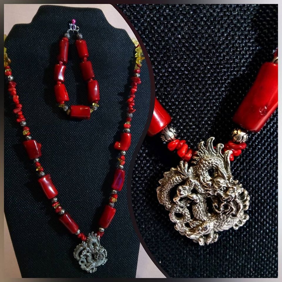 Red Coral Dragon Published May 28, 2020 at 960 × 960 Red coral dragon set ~ Sold! Red coral, citrine necklace with dragon pendant and bracelet