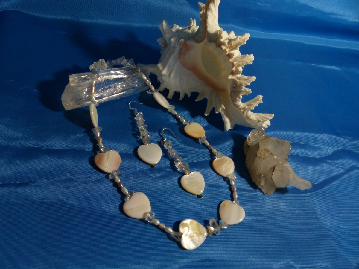 Shell Hearts Set Published May 28, 2020 at 4000 × 3000 Shell Hearts with quartz & pearl Sold! Shell hearts, quartz crystal and baroque pearls